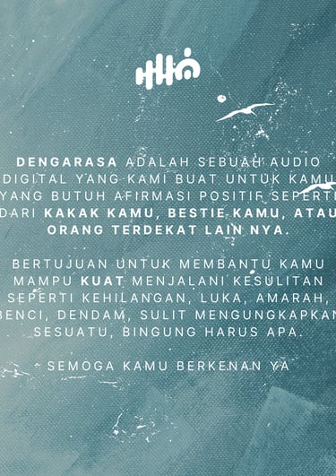 Dengarkan dan Rasakan adalah sebuah audio yang di isi oleh Coach Ashlam untuk kamu yang lagi butuh banget untuk di temani untuk menjalani sebuah proses masalah yang mungkin sedang kamu alami.